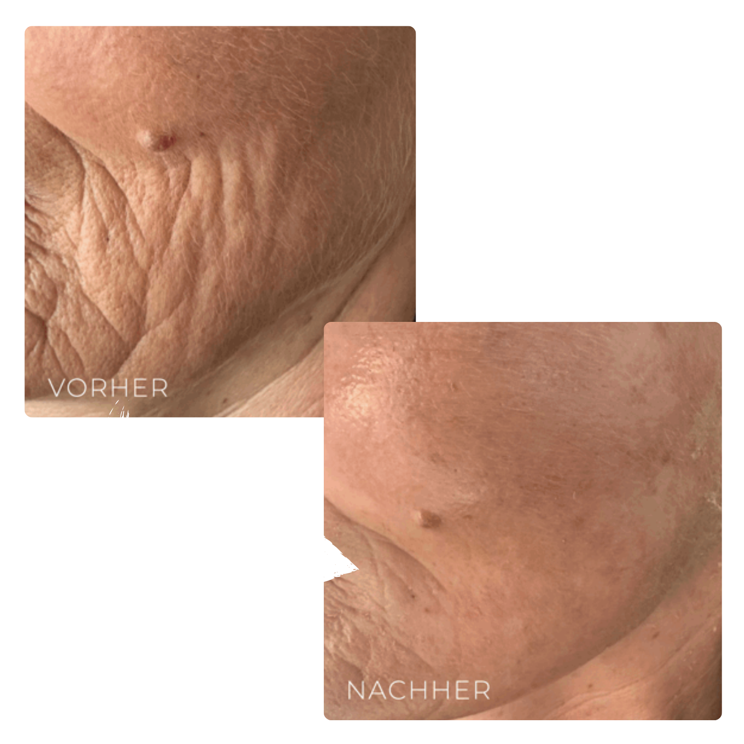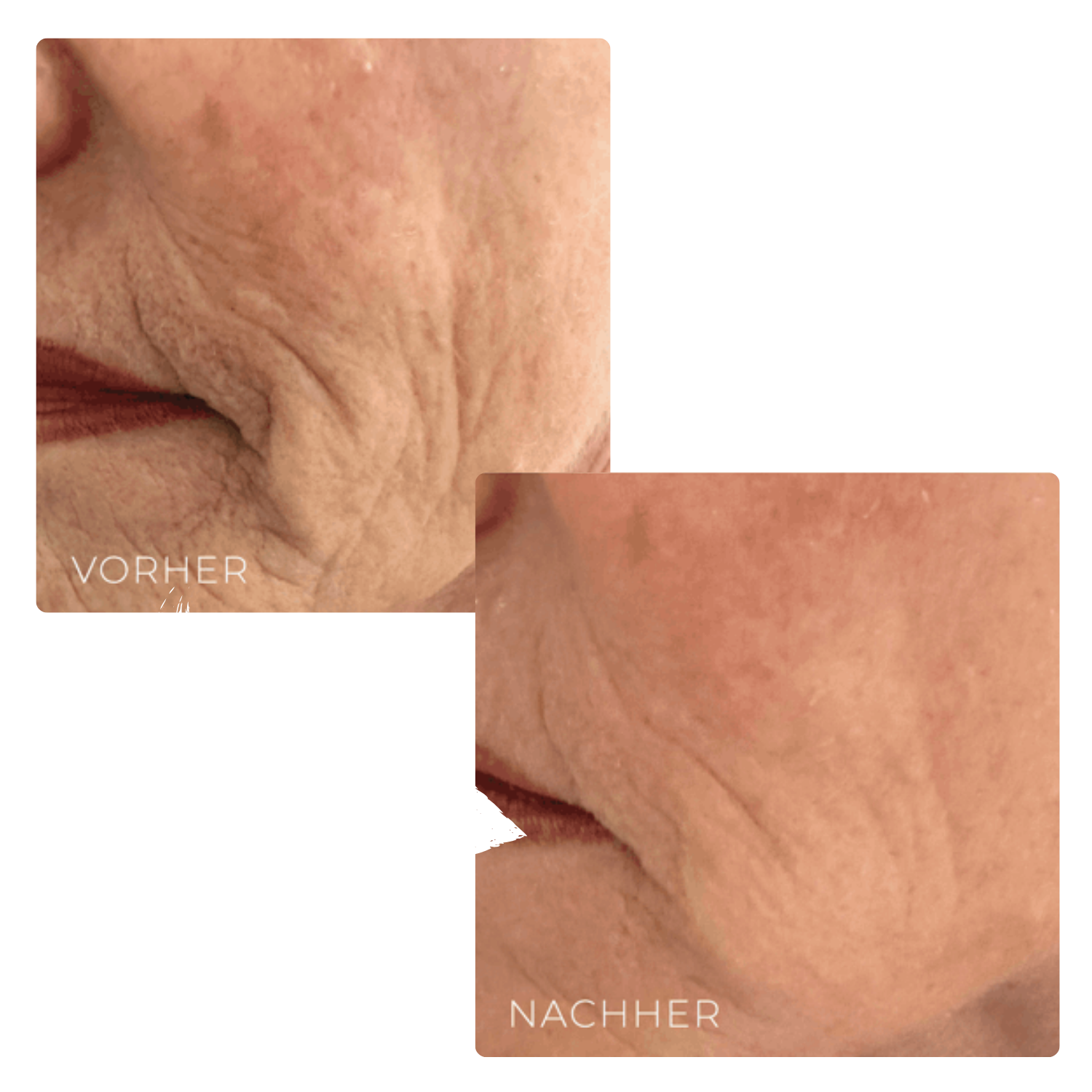Bereits nach der ersten Behandlung sind sichtbare Verbesserungen erkennbar. Die Haut wirkt straffer, glatter und erfrischter.